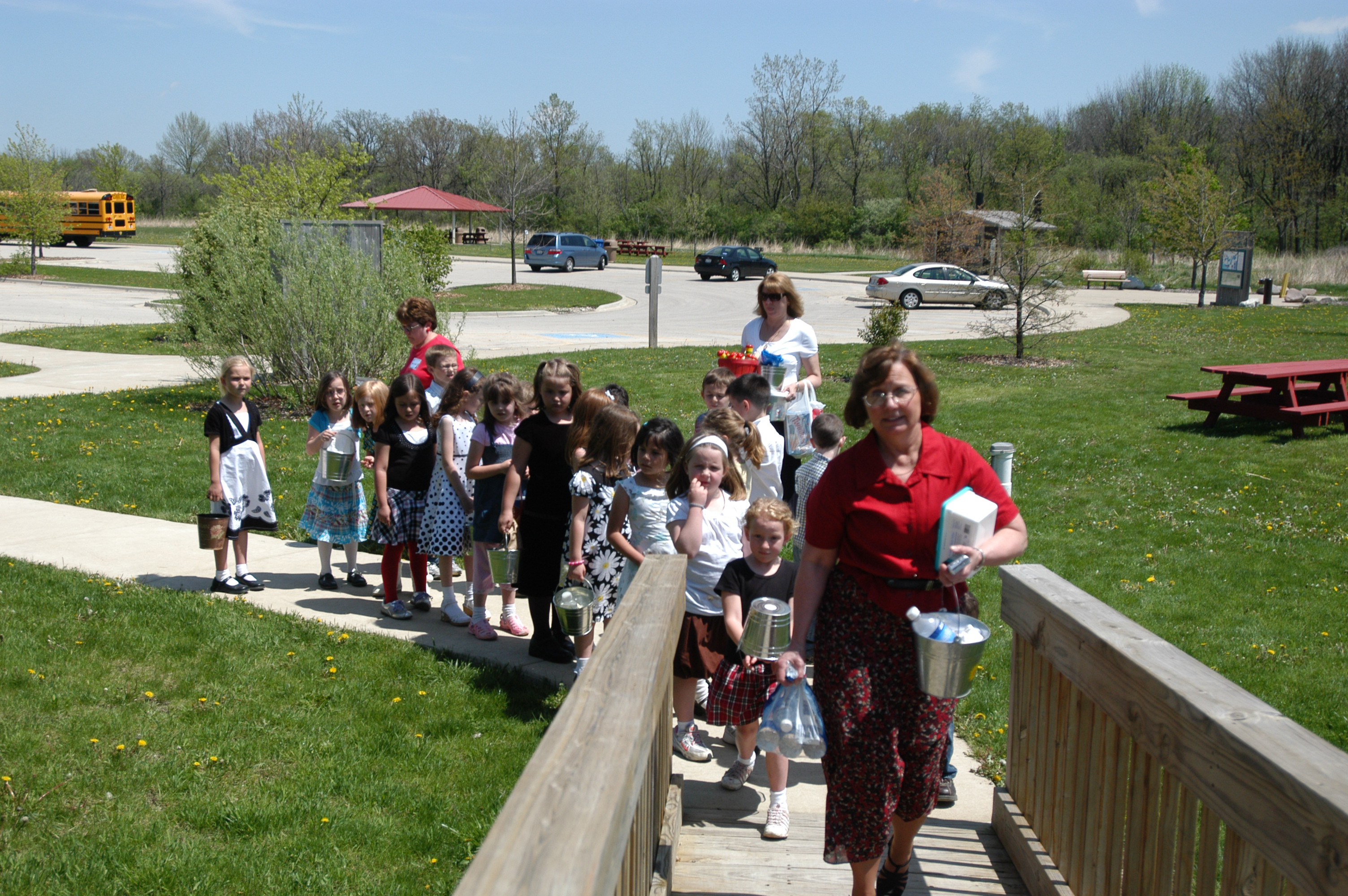 | Mrs. Wilson's first grade students arriving at